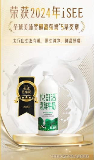 iSEE全球奖是食品饮料行业权威领先奖项,其下设的iSEE全球美味奖是中国市场诞生的首个东方特色美味奖,携手顶级名厨、美食家、专业感官评定机构,采用星级评分制度,发现表彰、传 播 陪 伴未来的 经典 美味 以 及新食品时代的新中国味。在2024年的评选中,共有来自乳品类、饮料 类、食品类、餐饮及餐饮+类的113款产品获得摘星比例低于10%的三星奖,评审主席团进而从色、香、味、意、形、养 6大维度进行了全面且深入的严格筛选和投票决策,最终诞生了iSEE美味奖四星、五星终极大奖。悦鲜活有机鲜牛奶也凭借在高品质奶源、创新技术、生态有机、鲜活营养等方面的突出优势成为全球卓越创新与美味标杆。